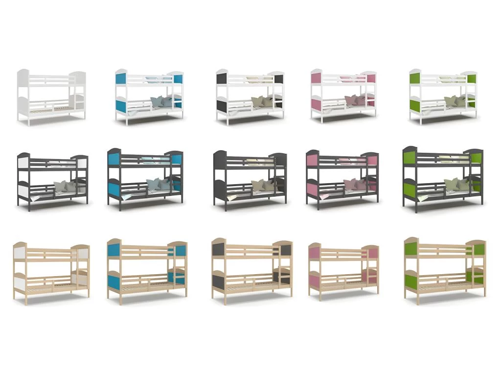 LIT SUPERPOSÉ MATI 90×190 livré avec 2 sommiers. Ce lit s’intègre parfaitement dans toutes les chambres d’enfant, grâce à un design simple et moderne. Ce lit superposé se distingue par ses jolies formes et des couleurs vives. Ce genre de lit convient aussi bien à un enfant, à partir de 3 ans, qu’à un adolescent, grâce à sa barrière de sécurité supplémentaire qui protège des chutes de jeunes enfants. Le meuble en BOIS et MDF lui garantit une bonne durée de vie. Modulable : séparable en deux lits indépendants et une échelle positionnable à gauche ou à droite. Nos lits sont fournis dans les colis en carton, en pièces détachées pour l’auto-assemblage. Attention les matelas ne sont pas fournis avec le lit.