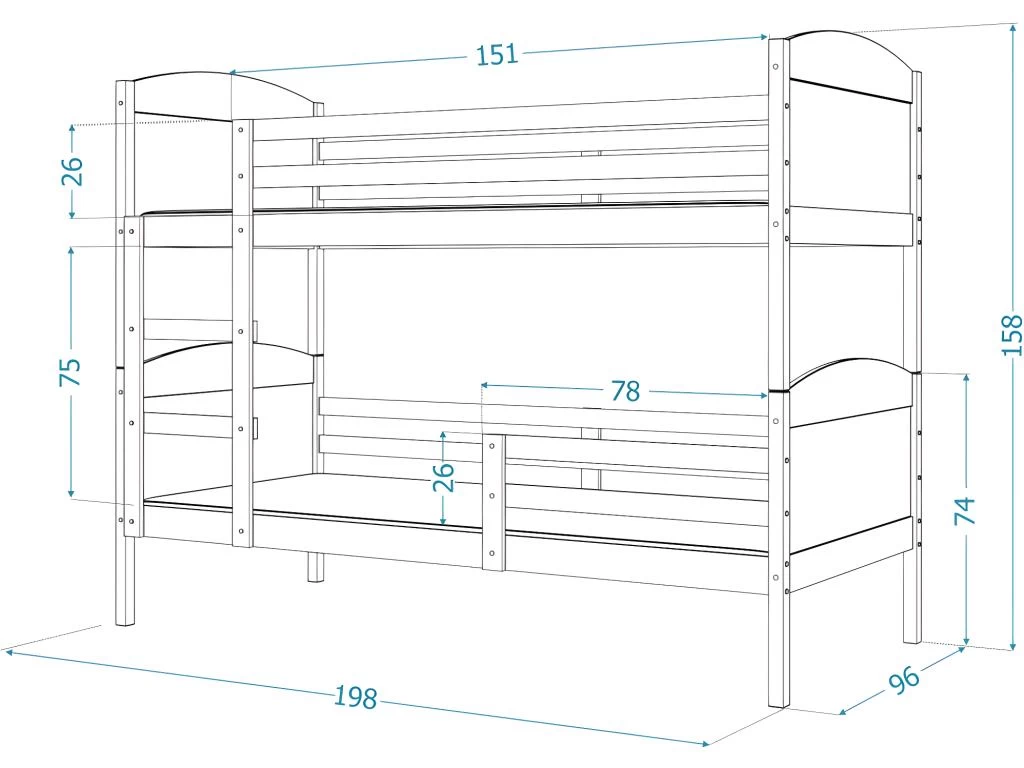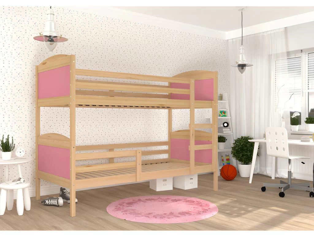 LIT SUPERPOSÉ MATI 90×190 livré avec 2 sommiers. Ce lit s’intègre parfaitement dans toutes les chambres d’enfant, grâce à un design simple et moderne. Ce lit superposé se distingue par ses jolies formes et des couleurs vives. Ce genre de lit convient aussi bien à un enfant, à partir de 3 ans, qu’à un adolescent, grâce à sa barrière de sécurité supplémentaire qui protège des chutes de jeunes enfants. Le meuble en BOIS et MDF lui garantit une bonne durée de vie. Modulable : séparable en deux lits indépendants et une échelle positionnable à gauche ou à droite. Nos lits sont fournis dans les colis en carton, en pièces détachées pour l’auto-assemblage. Attention les matelas ne sont pas fournis avec le lit.