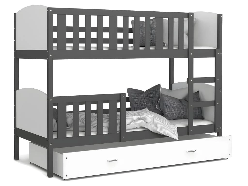 Lit superposé TOMY 90×190 livré avec tiroir, 2 sommiers et 2 matelas en mousse de 7cm. Ce lit s’intègre parfaitement dans toutes les chambres d’enfant, grâce à un design simple et moderne. Ce lit superposé se distingue par ses jolies formes et des couleurs vives. Ce genre de lit convient aussi bien à un enfant, à partir de 3 ans, qu’à un adolescent, grâce à sa barrière de sécurité supplémentaire qui protège des chutes de jeunes enfants. Le lit est fourni avec tiroir de rangement pour ranger votre linge ou des jouets des enfants. Le meuble en BOIS et Mdf lui garantit une bonne durée de vie. Modulable : séparable en deux lits indépendants et une échelle positionnable à gauche ou à droite. Nos lits sont fournis dans les colis en carton, en pièces détachées pour l’auto-assemblage.
