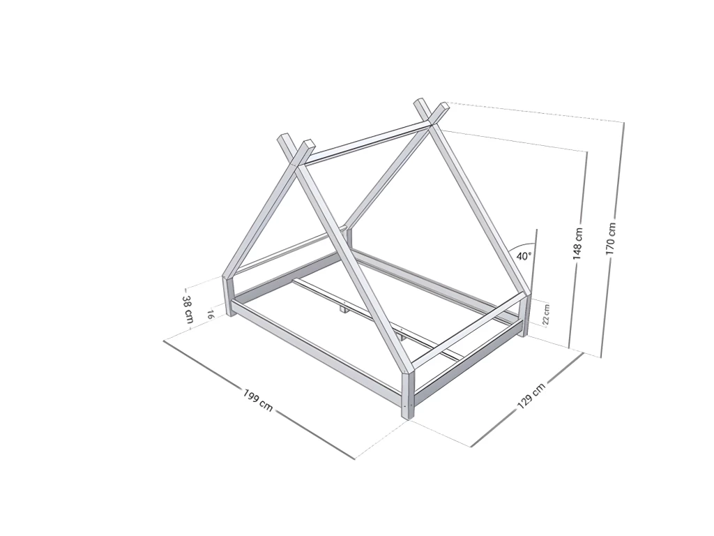 Poids et dimensions : Lit : 51 kg – 129 x 170 x 199 cm