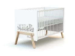 AT4 – Lit Bébé 60×120 DISNEY Doodle Zoo Mickey Blanc Et Hêtre Verni