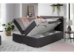 Ensemble Boxspring Complet Tête De Lit + Sommiers + Matelas + Surmatelas BORIS De VENESETTI – Tissu Luxe Gris Clair – 140×200 Cm