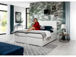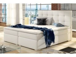 Ensemble Boxspring Complet Tête De Lit + Sommiers + Matelas + Surmatelas BORIS De VENESETTI – Simili Cuir Blanc – 140×200 Cm