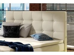 Ensemble Boxspring Complet Tête De Lit + Sommiers + Matelas + Surmatelas INAYA De VENESETTI – Simili Cuir Blanc Cassé – 180×200 Cm