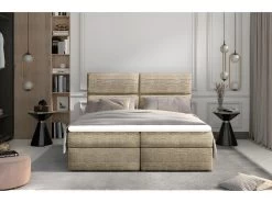 Ensemble Boxspring Complet Tête De Lit + Sommiers + Matelas + Surmatelas AMARIS De VENESETTI – Tissu Luxe Beige – 140×200 Cm