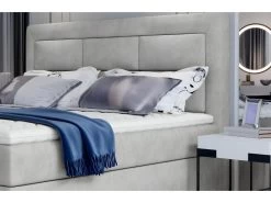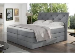 Ensemble Boxspring Complet Tête De Lit + Sommiers + Matelas + Surmatelas MIRO Tissu Luxe Gris – 180×200 Cm