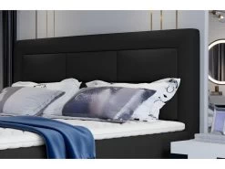 Ensemble Boxspring Complet Tête De Lit + Sommiers + Matelas + Surmatelas INAYA De VENESETTI – Simili Cuir Noir – 180×200 Cm