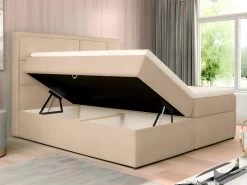 Ensemble Literie Déco Complet Tête De Lit + Sommiers Coffre + Matelas + Surmatelas – 160 X 200 Cm – Beige – LOUMIA De DREAMEA