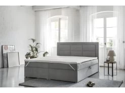 Ensemble Boxspring Complet Tête De Lit + Sommiers + Matelas + Surmatelas VISTA VELOURS De VENESETTI – Tissu Velours Luxe Gris – 160 X 200 Cm