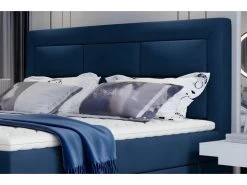 Ensemble Boxspring Complet Tête De Lit + Sommiers + Matelas + Surmatelas VISTA VELOURS De VENESETTI – Tissu Velours Luxe Bleu – 140 X 200 Cm