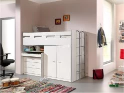 BAYMAX – Lit Combiné 90x200cm Blanc Avec Bureau Sur Roulettes