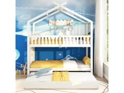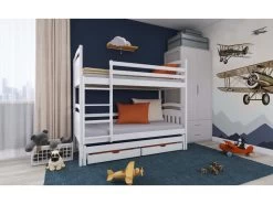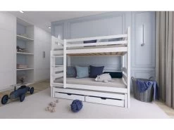 Lit Superposé 90*200 Cm + Tiroir Bois Massif Blanc – UCITA