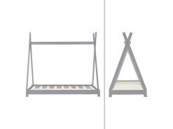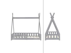 Lit Tipi Pour Enfants Indien Bois Massif Sommier à Lattes Gris Clair 140×70 Cm ML-DESIGN