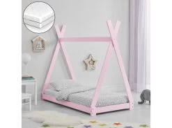 Lit Tipi Pour Enfants Avec Matelas Orthopédique Onejda Rose 80 X 160 Cm