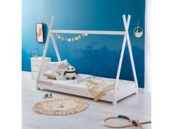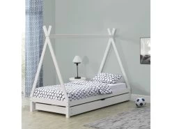Lit Tipi ELIN Lit Enfant Simple En Bois, 90 X 200 Cm, En Pin Massif Lasuré Blanc