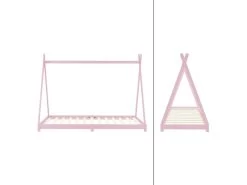 Lit Tipi Pour Enfants Indien En Bois Massif Sommier à Lattes Rose 200×90 Cm ML-DESIGN