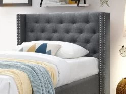 Lit Avec TĂȘte De Lit CapitonnĂ©e – 90 X 200 Cm – Tissu – Gris – MASSIMO II