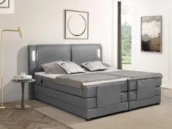 Ensemble Boxspring TĂȘte De Lit Avec Leds + Sommiers Relaxation Ă©lectrique + Matelas + Surmatelas – 2 X 80 X 200 Cm – Tissu Gris – ASTEMI De PALACIO
