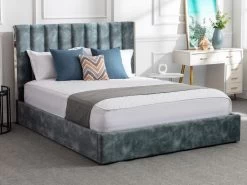 Lit 140 X 190 Cm Avec Tête De Lit Coutures Verticales – Velours – Bleu Canard – FEROYA