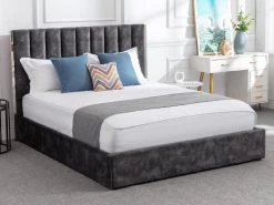 Lit 160 X 200 Cm – Velours Côtelé – Anthracite – SONETRI