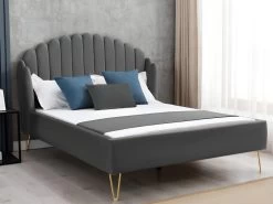 Lit 160 X 200 Cm Avec Tête De Lit Incurvée – Velours – Anthracite – CAMILLA II
