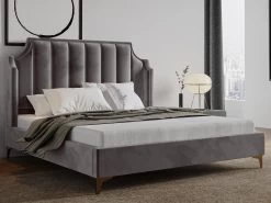 Lit 160 X 200 Cm Avec Tête De Lit Ondulée – Velours – Gris + Matelas – SAGALI