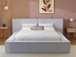 Lit Coffre 160 X 200 Cm – Velours Côtelé – Gris Clair + Matelas – TIMANO