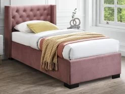 Lit Coffre 90 X 200 Cm Avec Tête De Lit Capitonnée – Velours – Rose + Matelas – MASSIMO