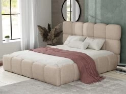 Lit Coffre – 160 X 200 Cm – Tissu Bouclette – Beige – DAMADO De Pascal Morabito