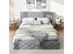 Lit Coffre Capitonné En Velours Avec Sommier à Lattes – 140x200cm – Gris Clair