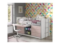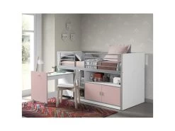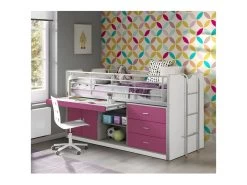 BAYMAX – Lit Combiné 90x200cm Rose Avec Bureau Coulissant