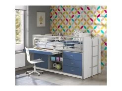 BAYMAX – Lit Combiné 90x200cm Bleu Avec Bureau Coulissant