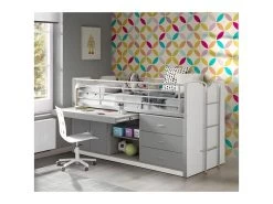 BAYMAX – Lit Combiné 90x200cm Gris Avec Bureau Coulissant