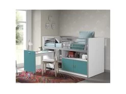 BAYMAX – Lit Combiné 90x200cm Turquoise Avec Bureau Coulissant