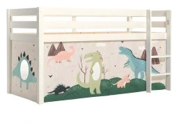 Lit Mi-Hauteur 90×200 Sommier Inclus Housse Dino Pino Blanc
