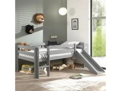 Lit Mi-Hauteur 90×200 Toboggan Sommier Inclus Housse Space Pino Gris