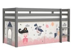 Lit Mi-Hauteur 90×200 Sommier Inclus Housse Fairy Pino Gris