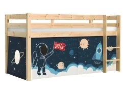 Lit Mi-Hauteur 90×200 Sommier Inclus Housse Space Pino Bois