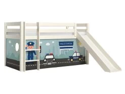 Lit Mi-Hauteur 90×200 Toboggan Sommier Inclus Housse Police Pino Blanc