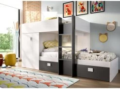 Lit Pour Enfants Dbajram, Chambre Complète Avec Armoire Et Tiroirs, Composition De Lits Superposés Avec Deux Lits Simples, 271x111h150 Cm, Blanc Et Anthracite