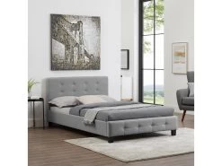 Lit ROMEO Tête De Lit Capitonnée – 90 X 190 Cm – Tissu Gris + Matelas