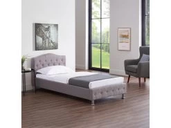 Lit Simple Pour Adulte JOLIEN Avec Sommier 120×190 Cm 1 Place Et Demi, Tête Et Pied De Lit Capitonnés Avec Strass, En Tissu Gris