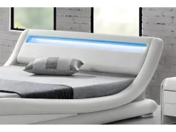 Lit Seattle – Structure De Lit Simili Blanc Avec LED Intégrées – 140×190 Cm