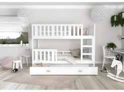 Lit Superposé Enfant NEMO 90X190 Cm – 2 Sommiers Et Tiroir Inclus Blanc