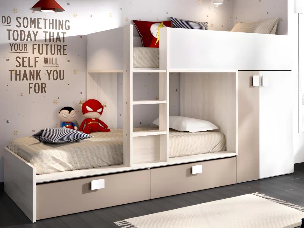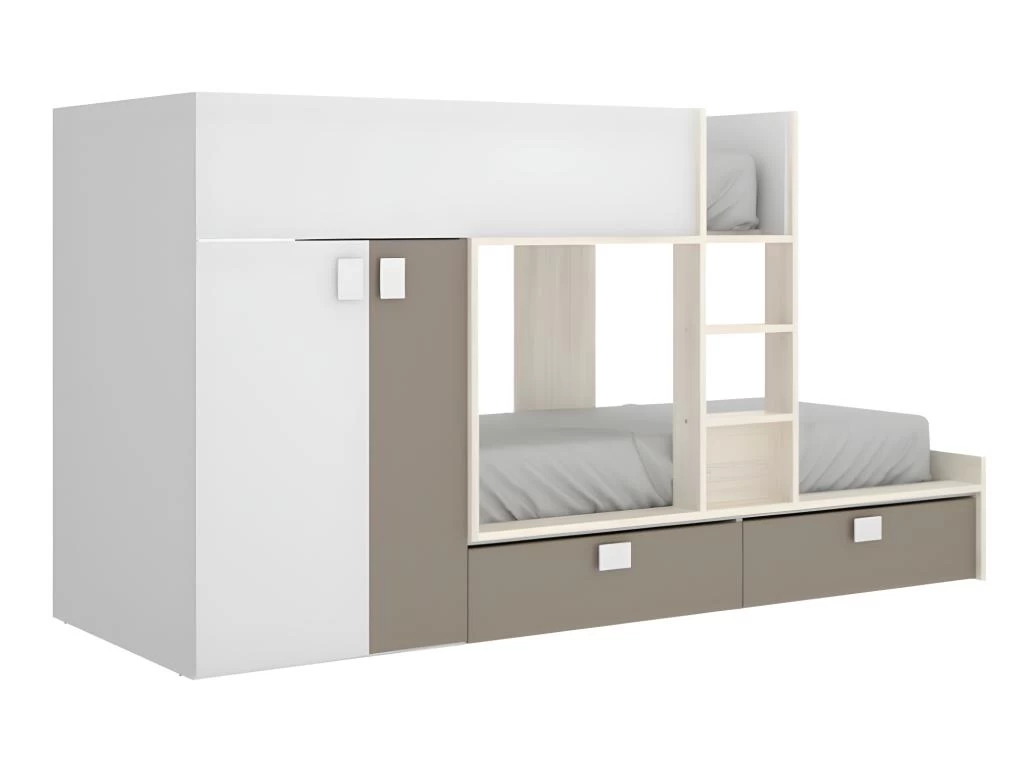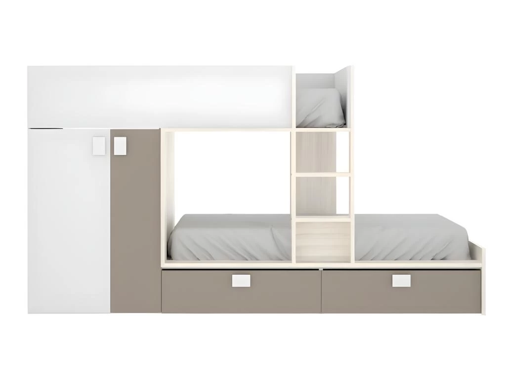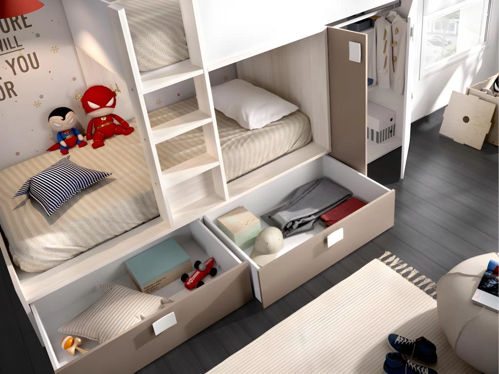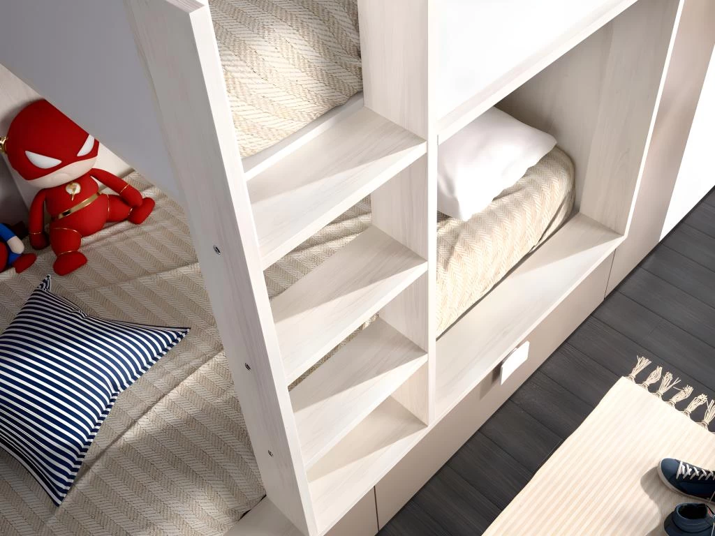 Libérer de la place dans la chambre de vos enfants grâce aux lits superposés JUANITO. Son armoire et ses 2 grands tiroirs vous permettront de ranger l’ensemble de leurs affaires.
