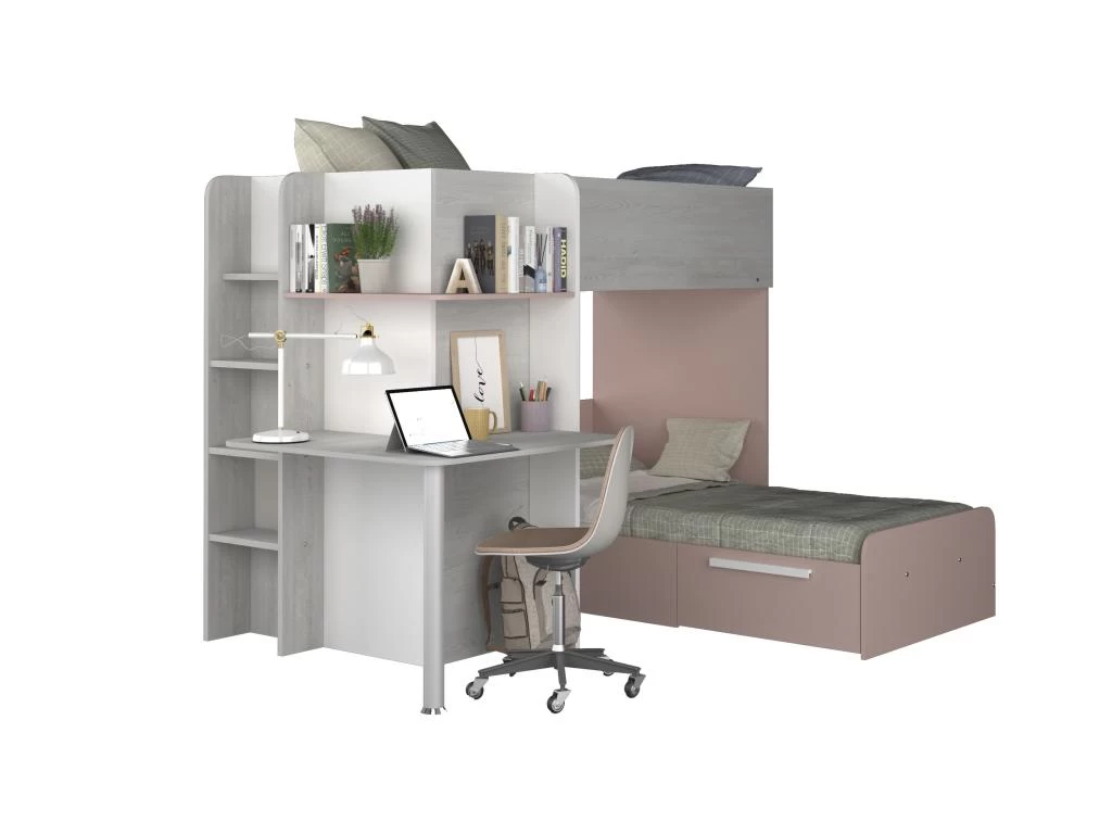 Ce lit est idéal pour libérer de la place dans la chambre de vos enfants. Ils pourront facilement ranger leurs affaires dans l’armoire, le grand tiroir et le bureau. Un espace chevet est également prévu pour le couchage du bas.