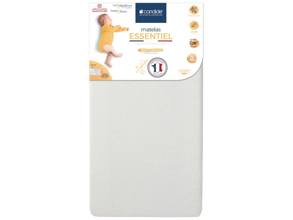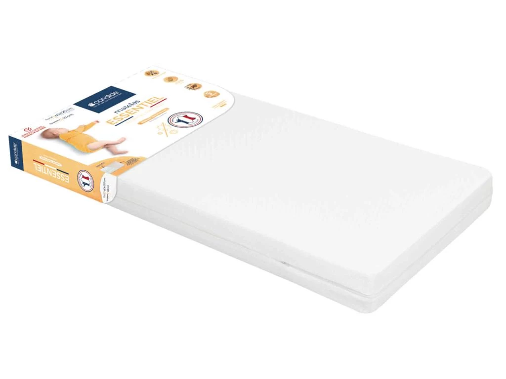 Matelas bébé ESSENTIEL, déhoussable. Epaisseur de 10 cm. Lavable en machine à 30°C.