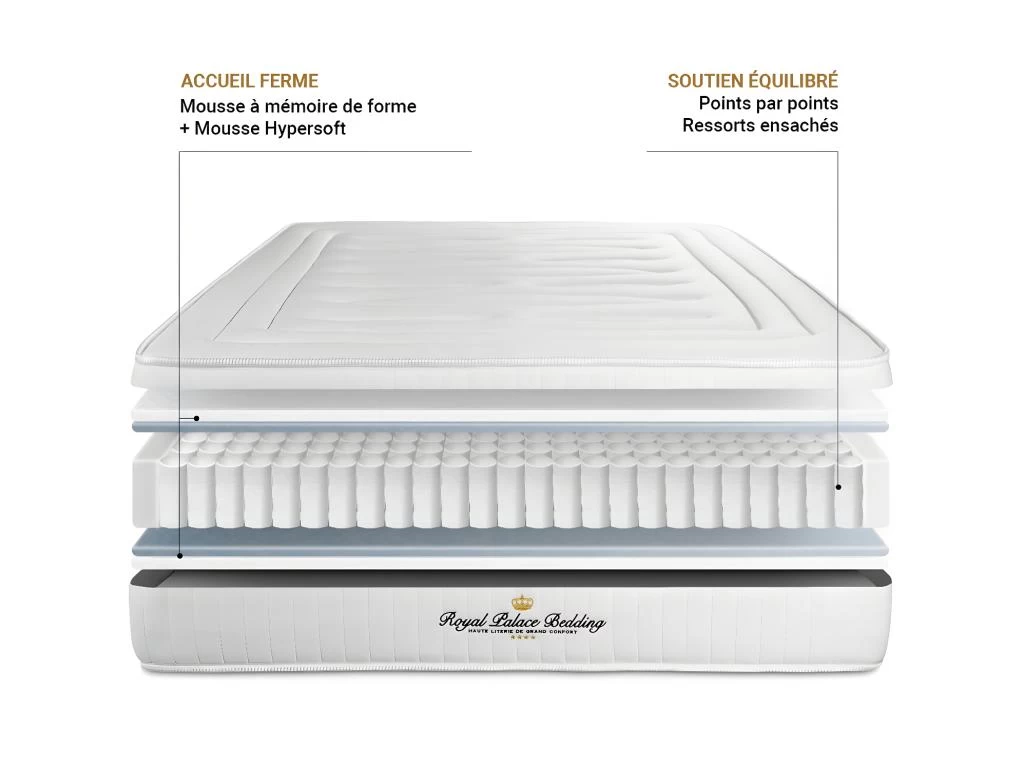 • Accueil : Ferme avec 2,5 cm de mousse polyuréthane à mémoire de forme + soft
