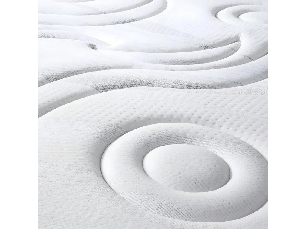 Nous avons imaginé ce matelas pour les personnes souhaitant dormir sur un nuage. En effet. nos équipes ont conçu un matelas avec un noyau de mousse polyuréthane Haute résilience 28kg/m3 puis 6 cm de mousse polyuréthane à mémoire de forme 60kg/m3 ainsi que 4 cm de mousse polyuréthane Hyper Soft ultra aérée. Toutes ces caractéristiques offriront à notre clientèle un sommeil des plus réparateur et la sensation de se trouver dans un petit nid douillet.
