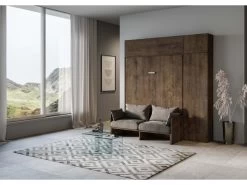 Armoire Lit Escamotable Vertical 160 Kentaro Sofa Avec Colonne Et élements Hauts Noyer
